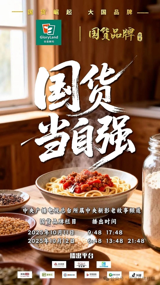 近日,谷品新約無麩質食品品牌,正式登陸中央廣播電視總臺所屬中央新影老故事頻道《國貨品牌》欄目。作為聚焦有價值觀、有文化、有溫度、有行業擔當的國家級媒體平臺,《國貨品牌》以細膩的鏡頭語言,深度挖掘谷品新約從危機中尋找機遇、于挫折中鑄就輝煌的奮斗歷程,不僅展現了谷品新約品牌的成長軌跡,更以國貨復興之名,揭開了中國制造崛起背后的堅守與智慧。